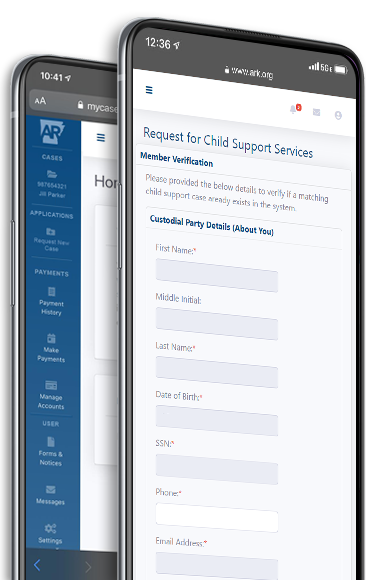 The new Request Child Support Services page provides options to apply for a new child support case or to request for a closed case be reopened to reapply for services.