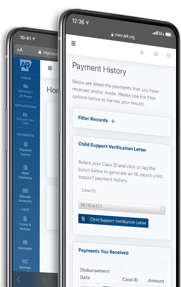 The Payment History page provides a listing of the most recent payments made by you or to you, and even has the option to print a child support verification letter. Use the filter options to expand or narrow your history results.